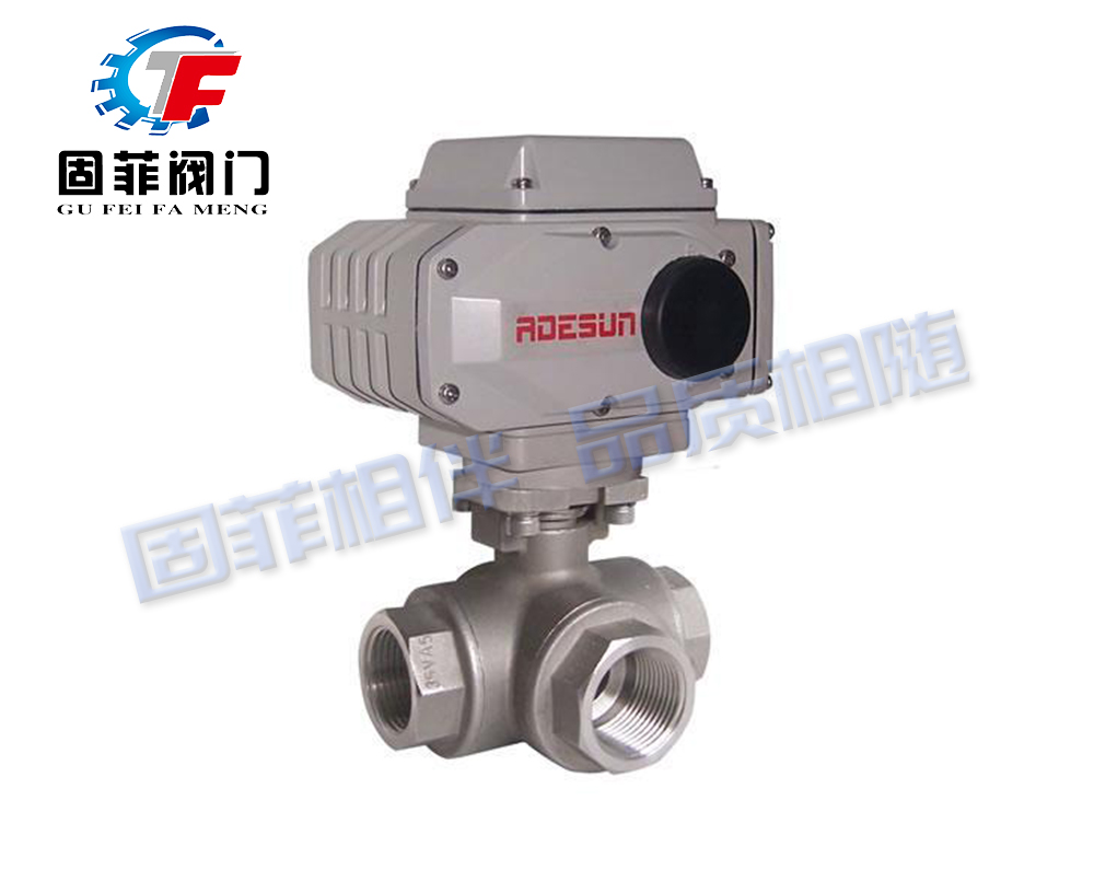 GFQ914/5F電動(dòng)螺紋三通球閥采用內(nèi)螺紋連接形式,配備適合電動(dòng)執(zhí)行器安裝的高平臺(tái),密封面結(jié)構(gòu)形式為軟密封,其流通能力大,可控制氣體、液體、蒸汽,更適用于控制高粘度纖維顆粒狀的流體,也適用于密封要求較嚴(yán)格的場(chǎng)合。GFQ914/5F電動(dòng)內(nèi)螺紋三通球閥由精小型電動(dòng)執(zhí)行器與高平臺(tái)內(nèi)螺紋L型三通球閥組成,L型三通球閥為兩閥座密封三通球閥,其結(jié)構(gòu)緊湊、外型美觀、密封性能好,能實(shí)現(xiàn)對(duì)管道中介質(zhì)流向的切換,也能使相互垂直的兩個(gè)通道連通或關(guān)閉。